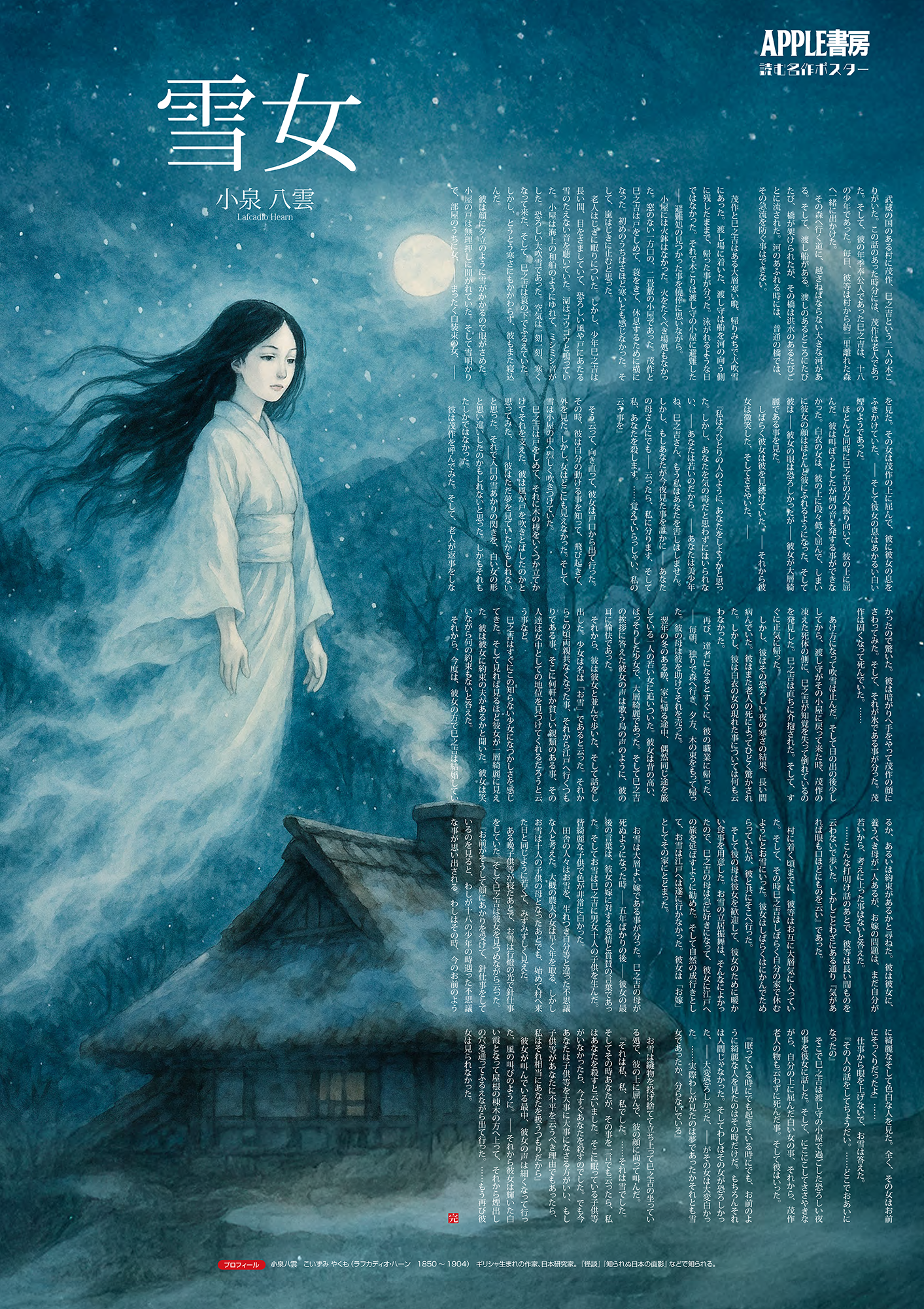 小泉八雲『雪女』(3)イラスト左(小・月夜)  (yakumo03)